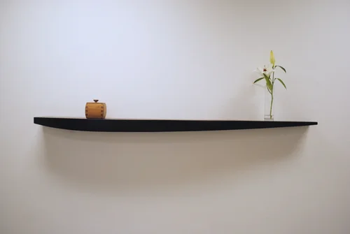 Blackened steel shelf, cherry and copper box, and flower and vase, 2014