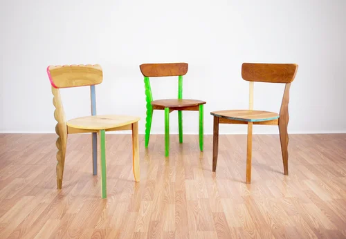 Furniture pieces made predominantly from steel and wood.